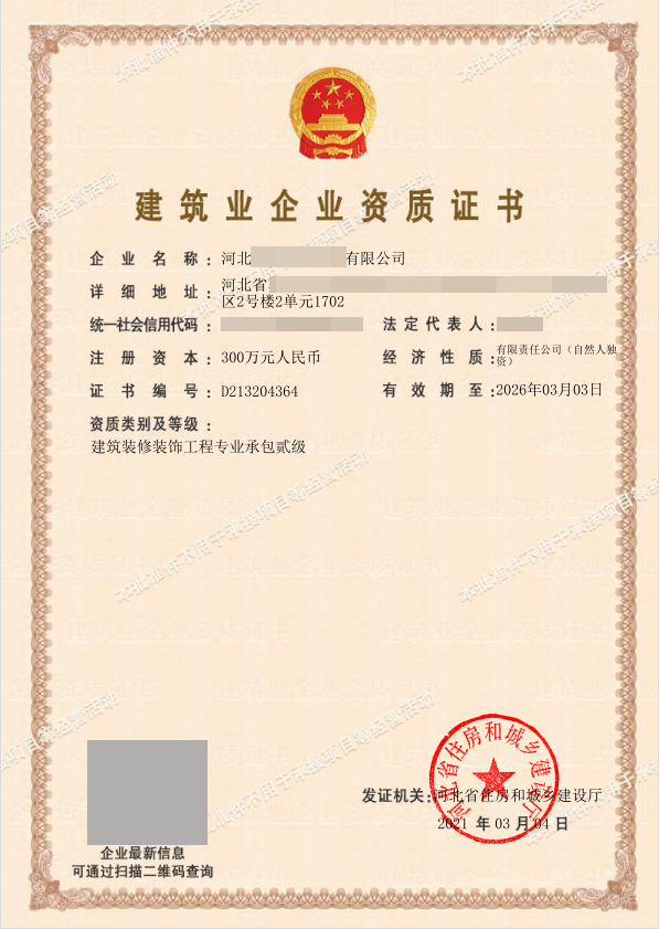 建筑裝修裝飾工程專業承包二級資質