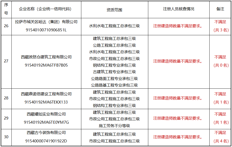 整改期滿(截止9月25日)仍未達到建設工程企業資質標準要求的,我廳將撤回其相應的資質證書并在西藏自治區住房和城鄉建設廳官網站上予以公告。