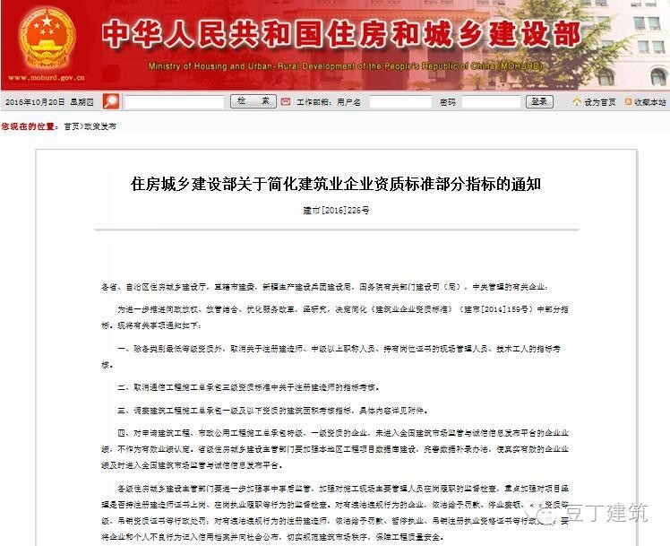 解讀住房城鄉(xiāng)建設(shè)部關(guān)于簡化建筑業(yè)企業(yè)資質(zhì)標(biāo)準(zhǔn)部分指標(biāo)的通知 建市[2016]226號